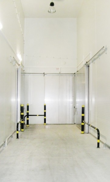 Drzwi mroźnicze mają zamontowaną grzałkę futryny, która zapobiega przymarzaniu uszczelki do futryny. Ponadto zastosowane są zawiasy podnoszące płat drzwiowy podczas otwierania. Drzwi przystosowane są do montażu kurtyny z folii mrozoodpornej, która ma za zadanie nie dopuścić do strat temperatury w czasie, gdy drzwi są otwierane (np. podczas załadunku lub rozładunku komory).